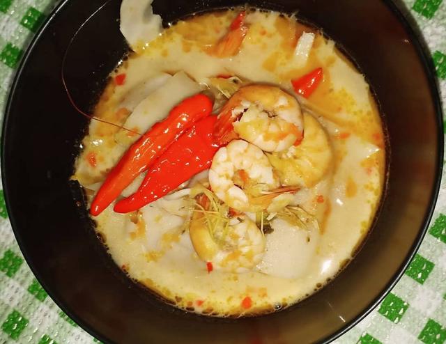 Tambahkan santan dan cabai rawit, masak hingga mendidih dan seluruh bahan matang, angkat.